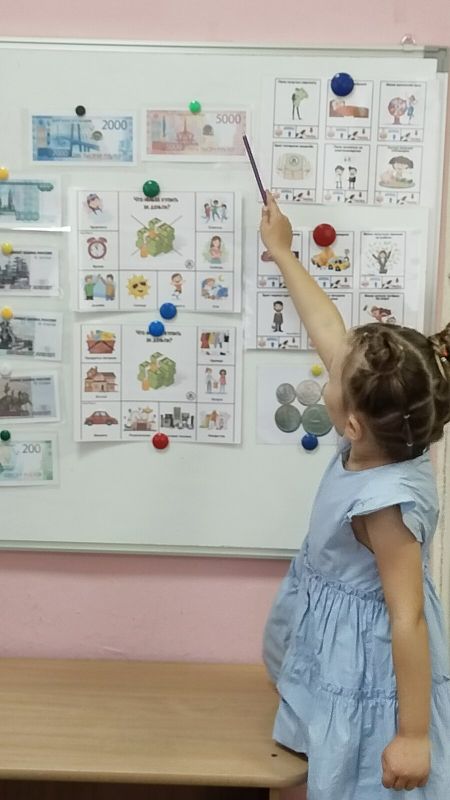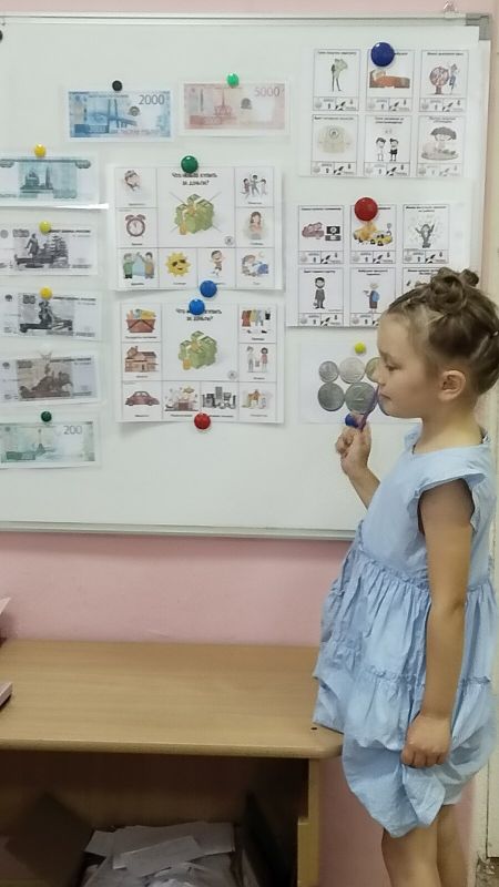 На занятиях по финансовой грамотности, в игровой форме педагоги беседуют с детьми о значении монет и бумажных денег, о расходах и доходах, о накоплениях, о том, как можно накопить деньги и как их тратить с умом.