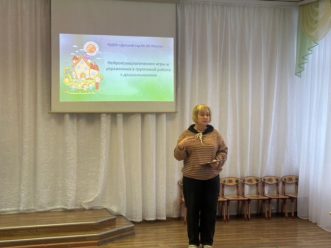 Педагог-психолог Дарья Олеговна Бетько с целью обобщения и распространения педагогического опыта выступила на семинаре и показала пособия и игры, которые использует в своей работе. Также опытом поделились педагог-психолог Наталья Сергеевна Анухина (тема выступления — «Нейроигры и нейроупражнения в групповой работе педагога психолога») и педагог-психолог Екатерина Викторовна Федченко (тема выступления — «Нейропсихологические игры и упражнения в работе педагога-психолога с детьми ОВЗ»).