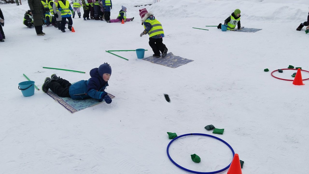 Юные спортсмены сражались в эстафетах: «Олимпийский огонь», «Лыжные гонки», «Хоккей», «Биатлон» и «Фигурное катание».