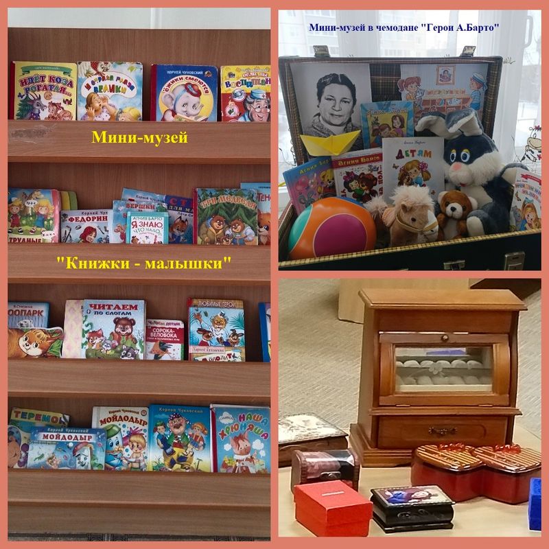 В старшем дошкольном возрасте педагоги организовали мини – музей «Мир транспорта», «Волшебная шкатулка», «Русская матрешка», «Звонкий колокольчик». В младшем дошкольном возрасте «Герои А. Барто», «Книжки – малышки».